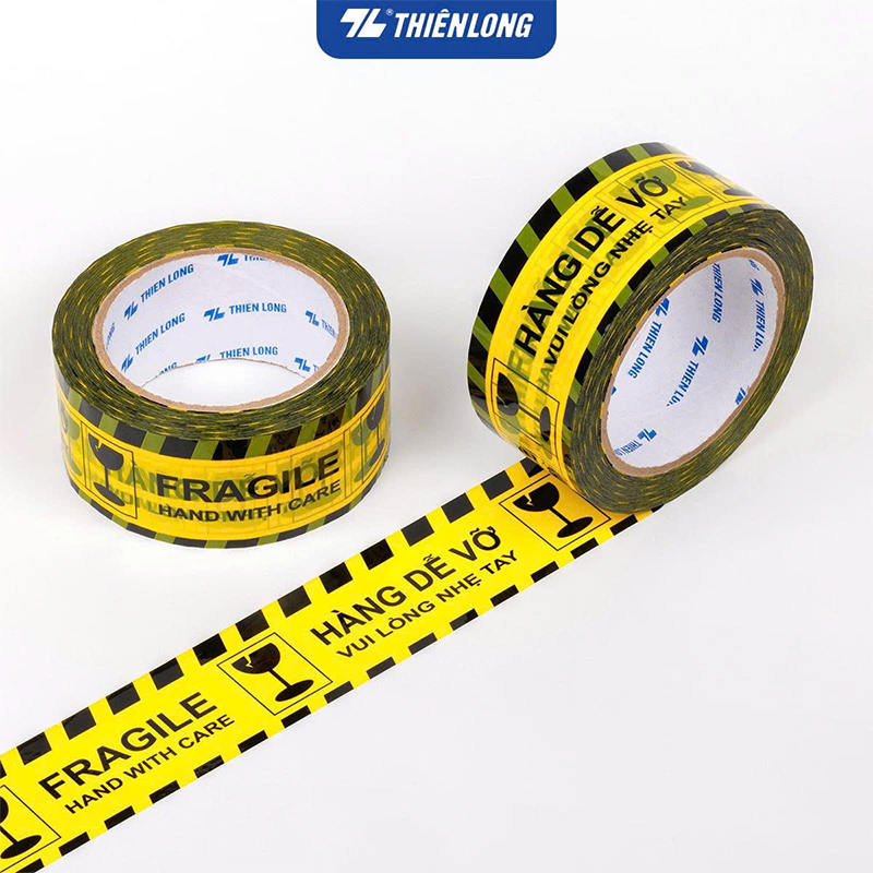 Băng keo Fragile BKD-001 50m là loại băng keo chuyên dụng cảnh báo thùng hàng dễ vỡ, phù hợp cho kho hàng, đơn vị logistics, shop online và các xưởng sản xuất. Với độ dài 50m và chiều rộng 48mm, băng keo mang lại độ bám dính chắc, dai, giúp niêm phong thùng carton đồng thời thông báo rõ ràng với người vận chuyển về tính chất dễ vỡ của kiện hàng, giảm rủi ro hư hỏng trong quá trình vận chuyển.