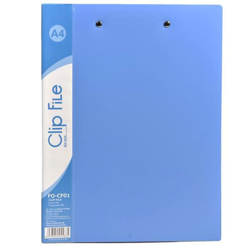 Bìa kẹp A4 Flexoffice FO-CF01 là sản phẩm văn phòng phẩm tiện dụng, giúp kẹp và bảo quản tài liệu khổ A4 nhanh chóng mà không cần đục lỗ. Thiết kế kẹp kim loại chắc chắn kết hợp bìa nhựa PP bền đẹp, phù hợp sử dụng trong học tập, văn phòng và các buổi họp, thuyết trình.