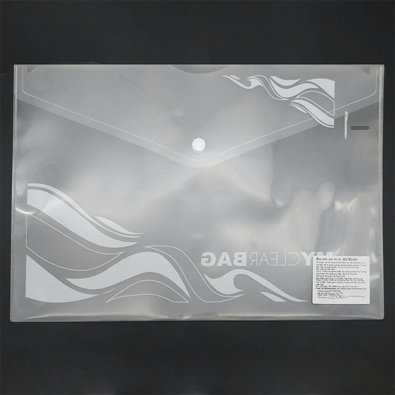Bìa nút A4 HCB2434 là sản phẩm văn phòng phẩm chất lượng cao, được làm từ nhựa trong suốt bền chắc, giúp lưu trữ hồ sơ A4 một cách gọn gàng và an toàn. Thiết kế nút bấm chắc chắn giữ giấy tờ cố định, phù hợp sử dụng tại văn phòng, trường học hoặc cá nhân.