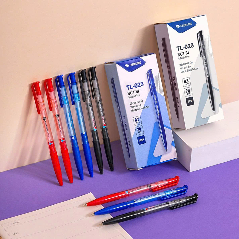 Bút Bi Thiên Long TL023 là sản phẩm bút bi chất lượng cao, giúp học sinh, sinh viên và nhân viên văn phòng viết mượt mà, đều mực và chính xác. Thiết kế gọn nhẹ, tiện dụng, phù hợp sử dụng hàng ngày trong học tập và công việc. Bút TL023 nổi bật với mực bền màu, không lem, mang lại trải nghiệm viết êm ái và chuyên nghiệp.