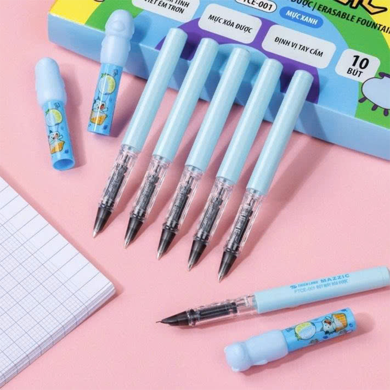 Bút máy xóa được FTCE-001 H10 là dòng bút máy sử dụng mực xóa được, giúp học sinh dễ dàng chỉnh sửa lỗi khi viết mà không làm bẩn hay rách giấy. Sản phẩm đặc biệt phù hợp cho học sinh tiểu học và người mới tập viết. Quy cách H10 (hộp 10 cây) tiện lợi, tiết kiệm chi phí khi mua dùng số lượng lớn.
