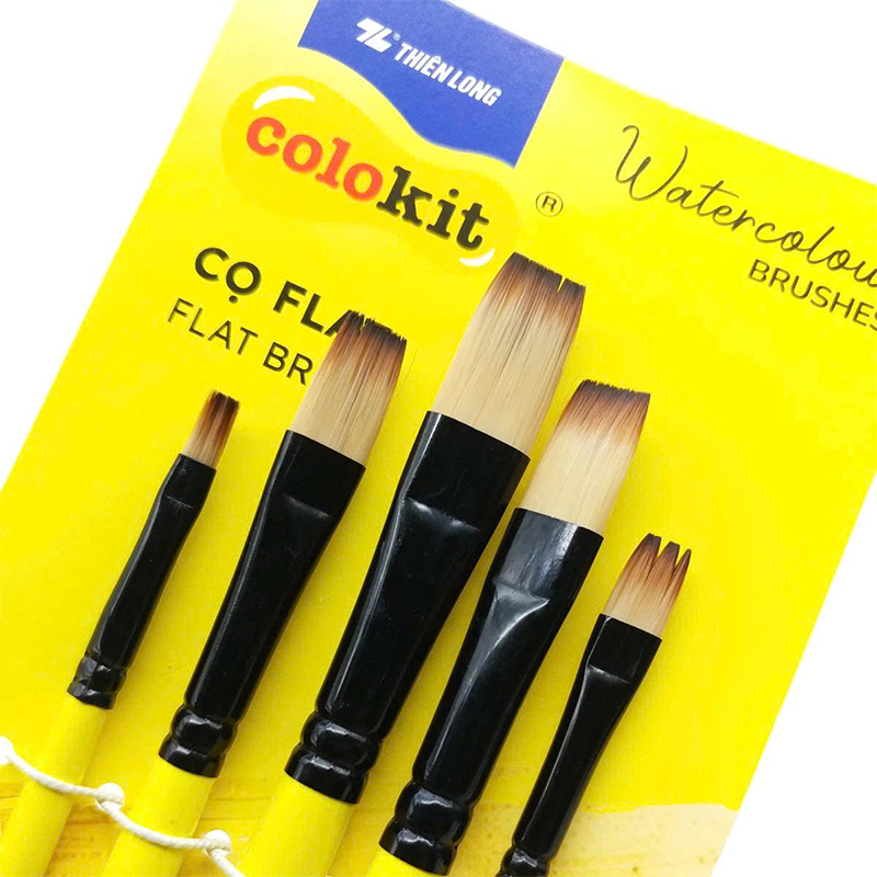 Cọ vẽ màu nước đầu flat BRW-C006 túi 5 là lựa chọn phù hợp cho người học vẽ cần tô mảng nhanh, đều và chính xác, giúp tranh vẽ rõ nét và chuyên nghiệp hơn.
