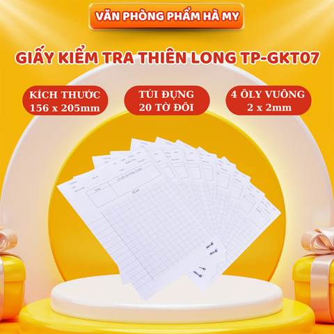 👉 Giấy kiểm tra TP-GKT07 4 ô ly vuông 2x2 là lựa chọn tiện lợi giúp bài làm rõ ràng, gọn gàng và đúng chuẩn.