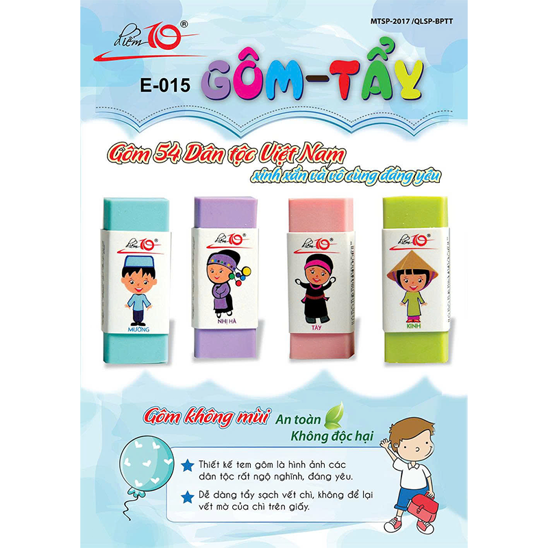 Gôm E-015 hộp 40 có chất lượng ổn định – giá tốt, dễ tiêu thụ, là lựa chọn phù hợp cho cửa hàng văn phòng phẩm, nhà sách và trường học.