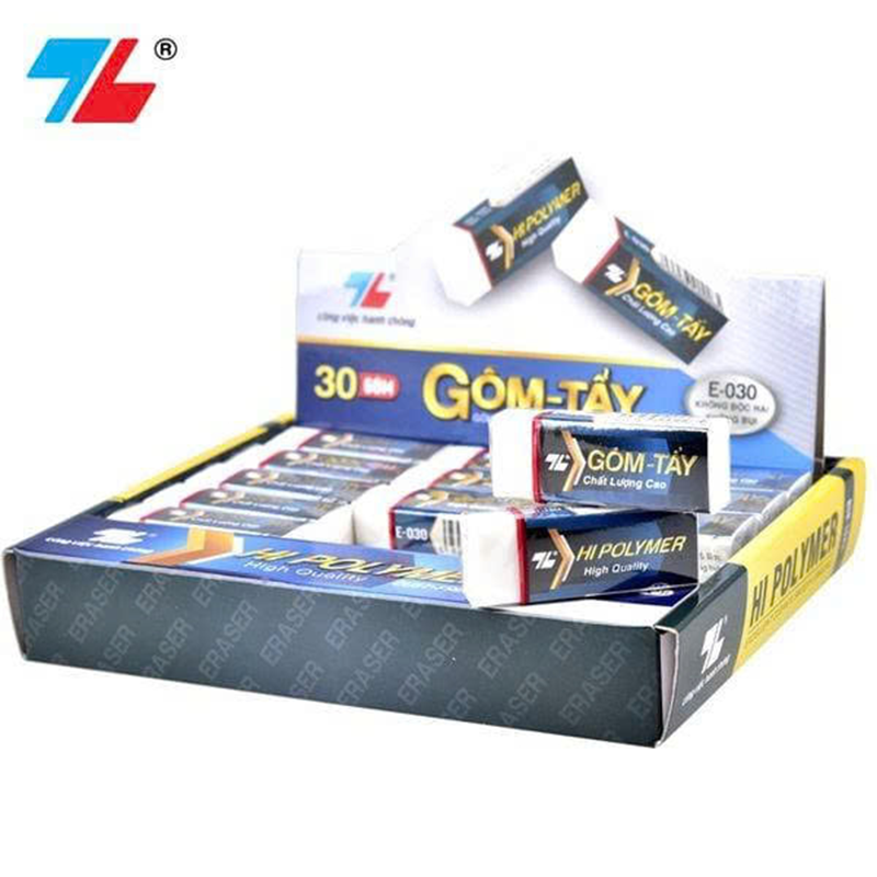 Gôm Hi Polymer E-030 mang lại hiệu quả tẩy sạch cao cấp, đáp ứng nhu cầu sử dụng chuyên nghiệp, dễ bán – được ưa chuộng, phù hợp cho nhà sách và cửa hàng văn phòng phẩm.
