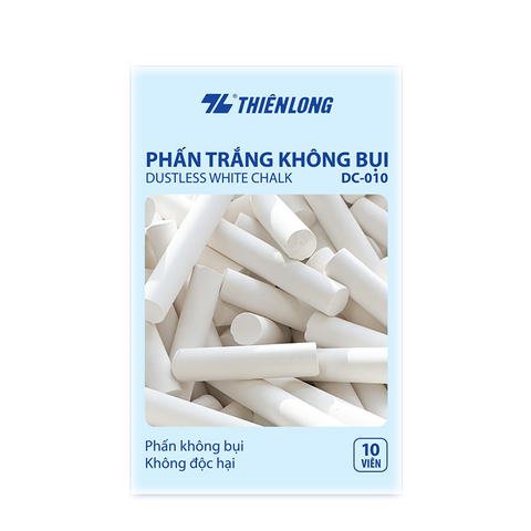 👉 Phấn Trắng Không Bụi DC-010 (Hộp 10 / T160) là lựa chọn lý tưởng cho trường học, trung tâm đào tạo và văn phòng, giúp viết rõ ràng, sạch bảng và bảo vệ sức khỏe người sử dụng.