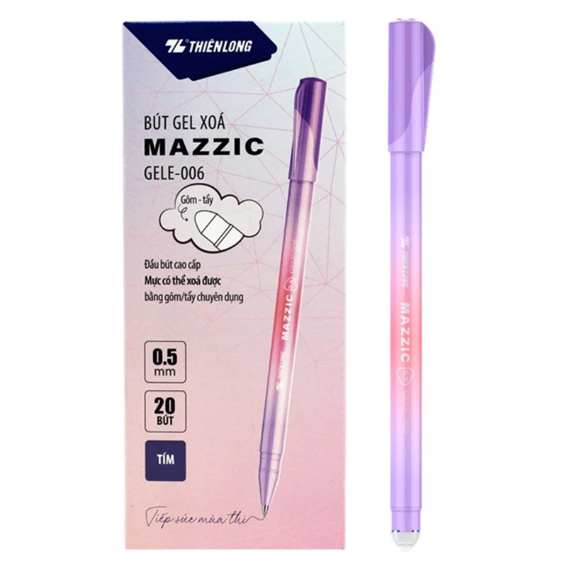 Mực: Gel xóa, xóa sạch, không lem giấy