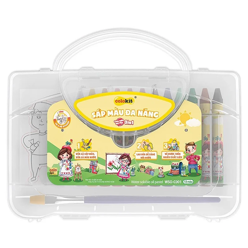 🌈 Đặc điểm nổi bật của sáp màu đa năng WSO-C001 hộp 12 màu